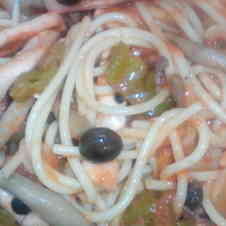 剣先イカと青ねぎとドライトマトのスパゲティ 難波hatch Ocat近くにあるイタリアンバール Barquelloquella
